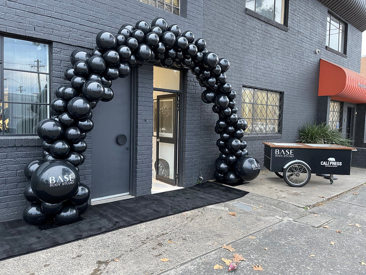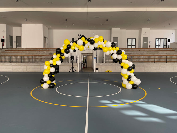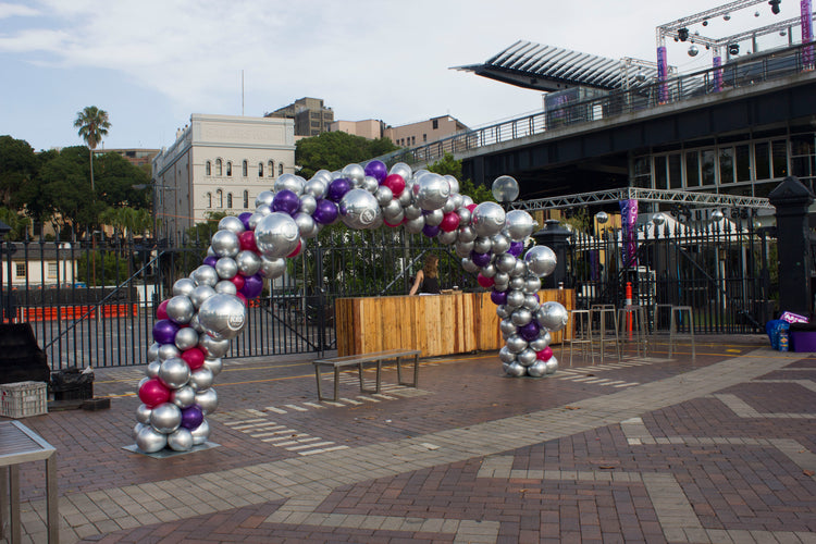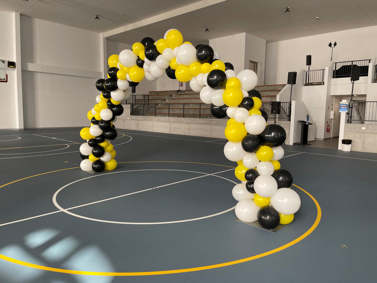 The Organic Arch is made on a Framework that is the property of Balloon Saloon. It is NOT DISPOSABLE. The design is made up of Latex Balloons filled with AIR and attached to the framework. There is a mix of sizes in 11" & 16" Latex Balloons.